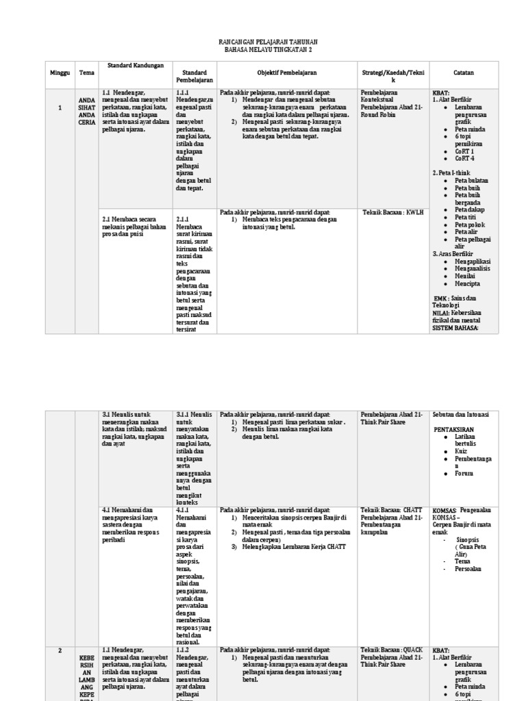 Rancangan Pengajaran Tahunan Bahasa Melayu Penggal 2 Stpm Baharu